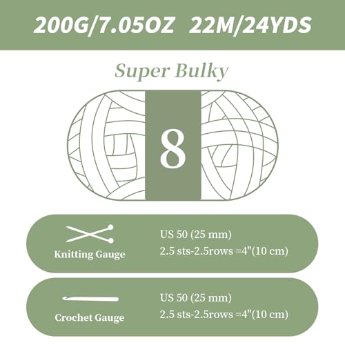 Selected 100% soft polyester, each set comes with 10 rolls. Each roll measures 24 yds/22 m in length, 0.78 in/2cm in thickness, and weighs 7.05 oz/200 g. Recommended for use with 20-25mm knitting needles or crochet hooks.