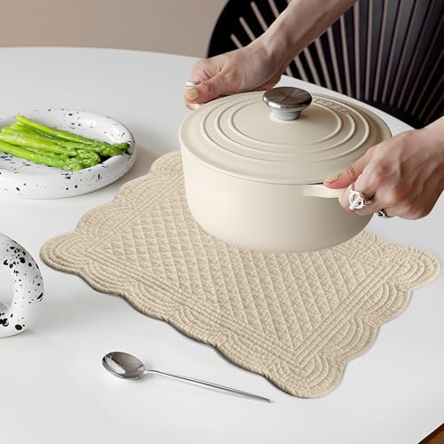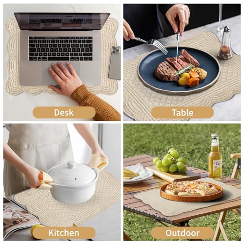 Crafted from 100% premium cotton fabric, our MINUPWELL placemats provide a soft, non-slip surface. They enhance friction between the placemat and table, safeguarding your food and drinks from sliding. Enjoy a more enjoyable and secure dining experience.