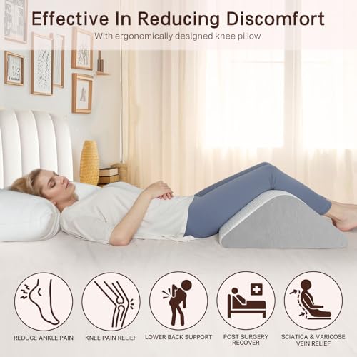Made of CertiPUR-US certified foam, our pillow ensures the right firmness for both support and comfort during sleep. The knee wedge pillow conforms to your body, providing support for your head, back, feet, knees, and ankles. It relieves pain, promotes better sleep, and helps your body relax.