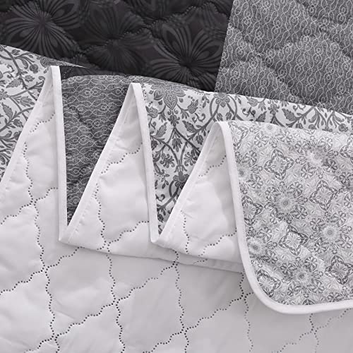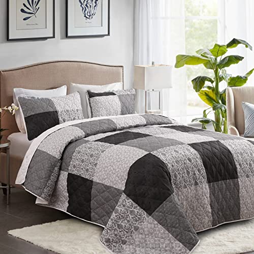 BALAPET Oversized Plaid Grey Black Bedspread & 2 Shams for King Bed