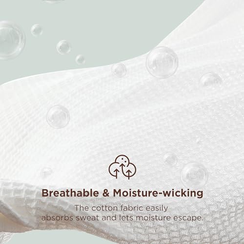 Bedsure Breathable and Soft 100% Cotton Waffle Weave Blanket Queen Size for Summer and Spring, White, 90×90 Inches Bed