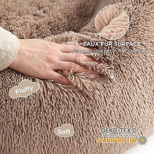 Soothing Support: This donut-shaped dog bed is ideal for pets who love to curl up. The raised rim snuggles your cat or dog, offering optimal head and neck support and a sense of security. The premium, ultra-soft filling provides joint and muscle pain relief.
