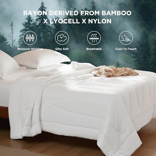 Our comforter features a blend of 62% nylon, 25% rayon derived from bamboo, and 13% Lyocell. This combination provides a silky-smooth feel and a refreshing cool touch. Perfect for hot sleepers, it keeps you comfortable and cozy even on humid nights.
