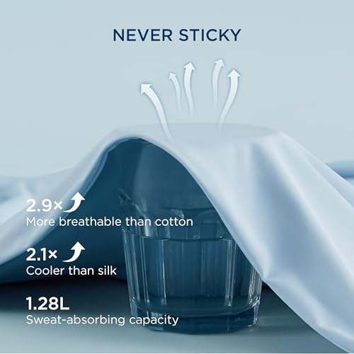 Cooling Duvet Cover: Our Q-Max 0.4 technology cools you instantly by 4℉, adapting to your body temperature for all-night comfort. This duvet cover is 6.2 times more breathable than cotton, absorbing up to 1.28 liters of sweat without feeling damp. Stay fresh and dry throughout the night.