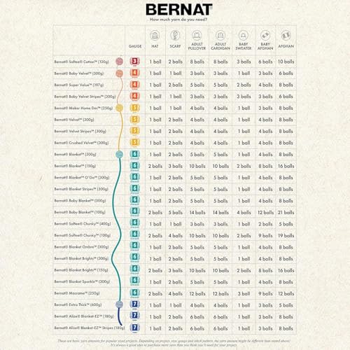 Easily achieve a 4″ x 4″ knitting gauge with 8 stitches and 13 rows using an 8 mm (U.S. 11) needle. For crocheting, the gauge is 7 sc and 8 rows with an 8 mm (U.S. L/11) hook. Bernat Super Bulky Yarn ensures a smooth and professional outcome every time.