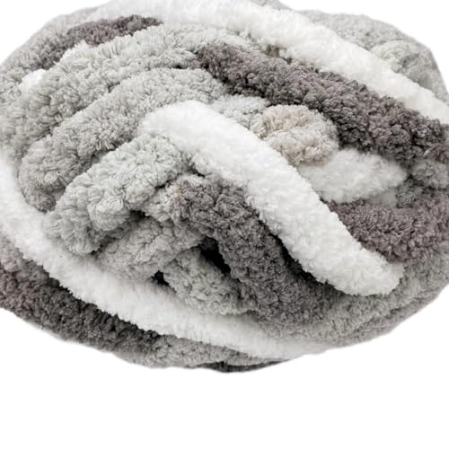 Chunky Chenille Yarn, Multi Grey & White, 8 Pack, Super Soft Thick Fluffy