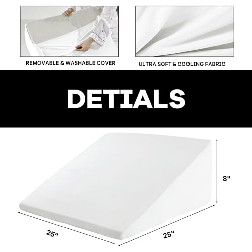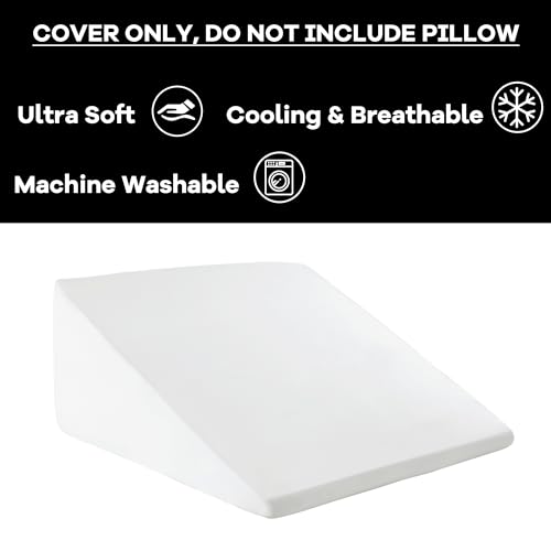 Cooling Bed Wedge Pillow Cover Q-max 0.4 Super Soft & Skin-Friendly (White, 25″x25″x8″), Removable & Machine Washable, W