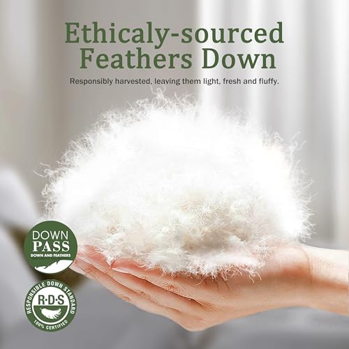 The duvet insert super king is filled with ethically sourced premium feather and down fibers, offering high fill power for exceptional warmth and fluffiness. The super king down comforter is temperature-regulated, ensuring a comfortable sleeping experience.
