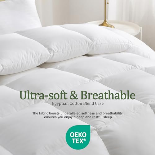 Crafted from ultra-soft Egyptian cotton blend fabric, the super king comforter features brushed technology, perfectly balancing softness, durability, and breathability. Certified by OEKO-Standard 100, it ensures you sleep peacefully and with assurance.
