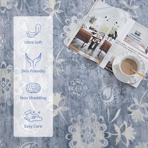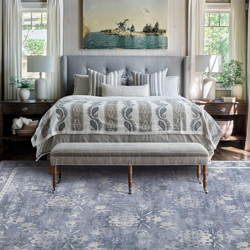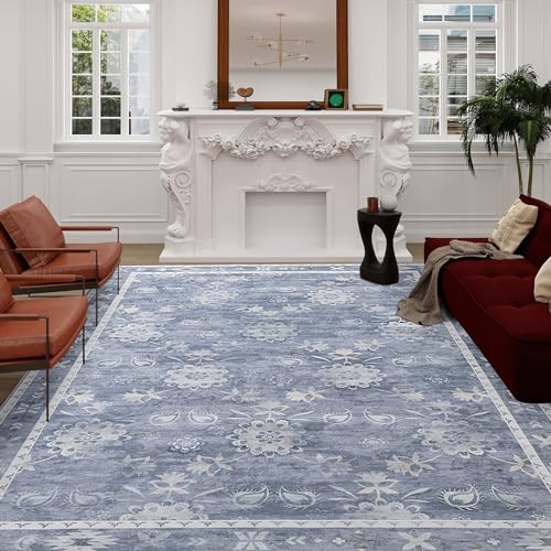 HOMBYS 9×12 ft Boho Area Rug for Living Room and Bedroom | Large Floral Floor Carpet with Non-Slip Backing for Indoo