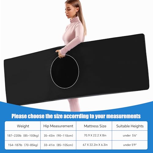 - 70.9 x 22.2 x 8 inches: For weights 187-220 lbs, hips 35-43 inches.