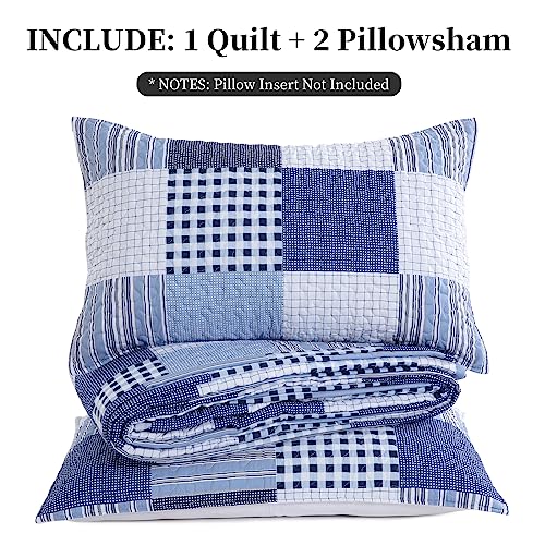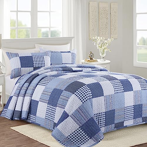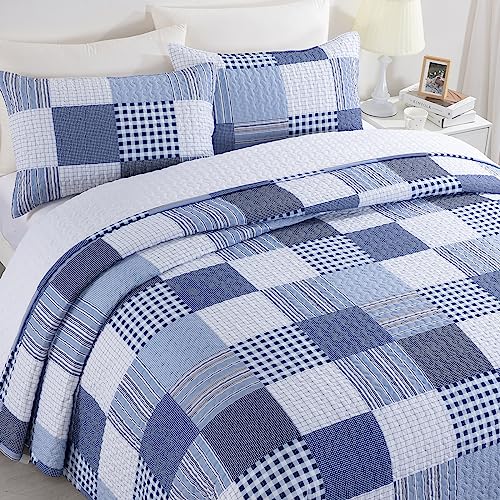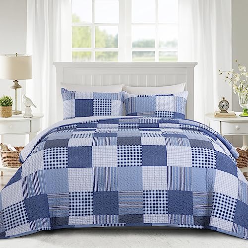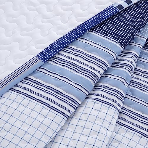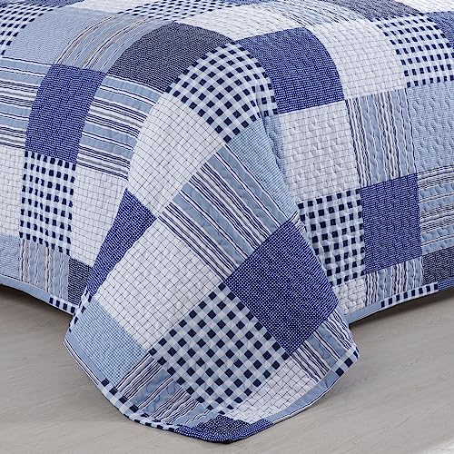 – Soft Lightweight Blue Grey Check Bedspread: Multi-layer construction with a printed stripe design, carefully stitched by hand for delicate and durable quality.