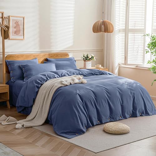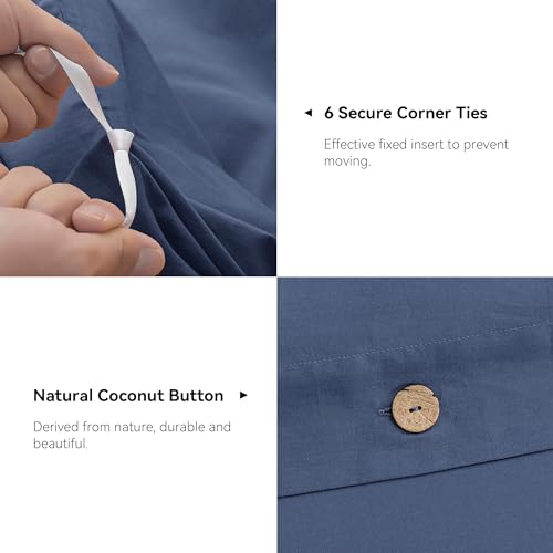 Our design features a unique, wrinkled fabric and button closure, giving a cozy and vintage look. No ironing is needed to maintain the natural texture. Neutral colors make it easy to blend with any room’s decoration, especially if you love a vintage style. Tie corners ensure your duvet stays in place.