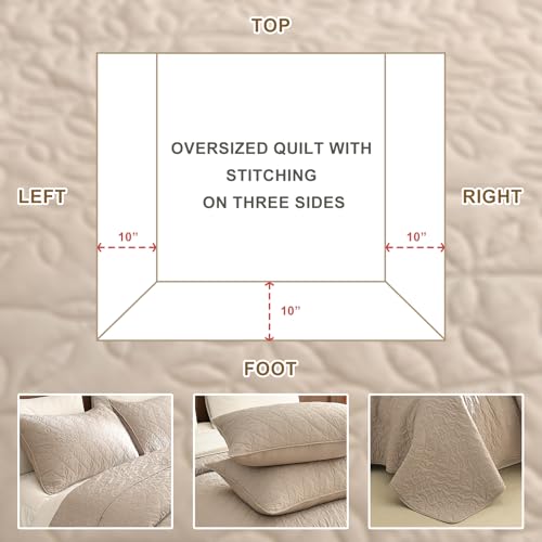 – Pieces Included: 1 solid linen-colored oversized king bedspread (128″x120″) and 2 matching pillow shams (20″x36″).