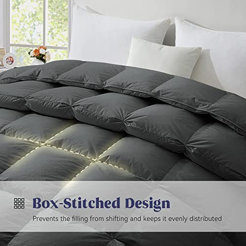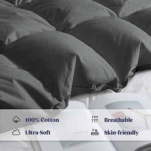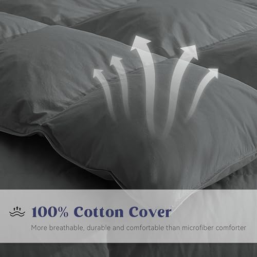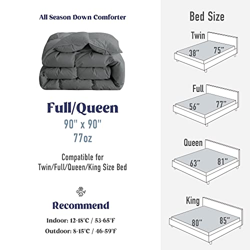 Perfect for the full or queen size, this all-season comforter is 90×90 inches with a 770 Oz fill weight, offering a perfect balance of fluffiness and warmth. These feather comforters are moisture-wicking and breathable, making them suitable for any season. Whether you prefer a light and airy feel in warmer months or extra warmth in cooler seasons, our comforters provide the ideal solution.