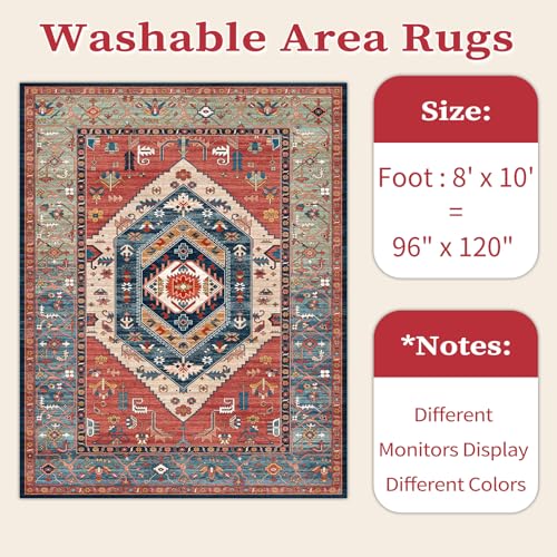 SERISSA Washable Rugs 8×10 Area Rugs, Ultra Soft Boho Rust Rug for Living Room and Dining Room Home Decor | SERISSA