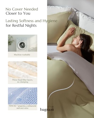 ☁Ultimate Softness – The HugNest CloudTouch Comforter uses a high proportion of TENCEL, especially in the fill, setting a new industry standard. It delivers an unparalleled level of softness, silky breathability, and a feeling like sleeping on a cloud every night.