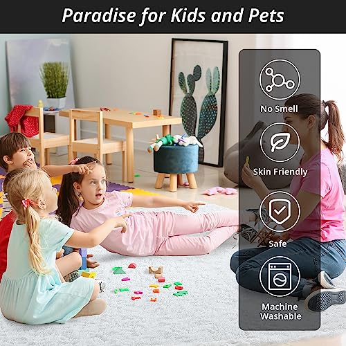 Our fuzzy carpet is designed with cloud-like softness. Made of plush materials with a unique sandwich structure of sponge and non-slip backing, it provides unparalleled comfort. It features over 10 million 1.4-inch plush fibers, ensuring a soft touch that barely sheds for a longer-lasting product.