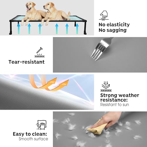 Introducing our indestructible chew-proof elevated dog bed. Our fully enclosed metal frame ensures no weak spots for your dogs to bite. Durable PVC Fabric: