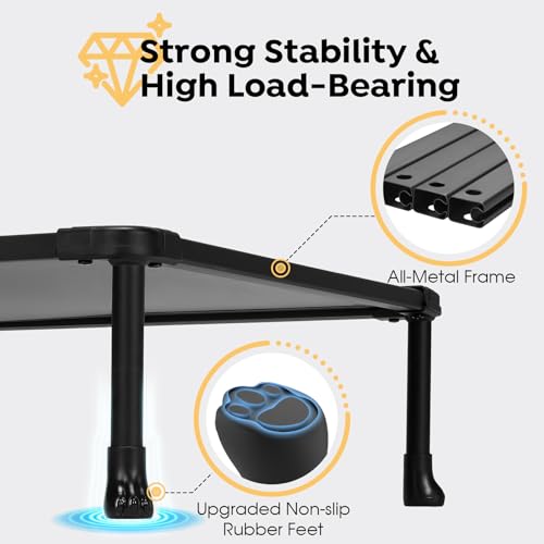 Our thickened metal frame and upgraded non-slip rubber feet provide strong stability and a maximum load capacity of up to 120lbs. No more worrying about the bed moving or shaking.