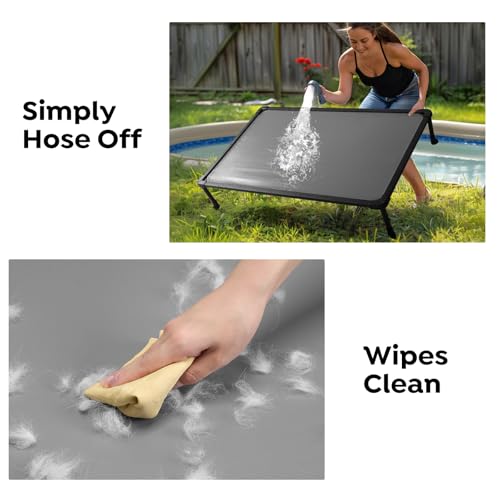 The smooth surface of our fabric makes it easy to wipe off dirt. You can also rinse the raised dog bed and dog cot with water and then let it dry.