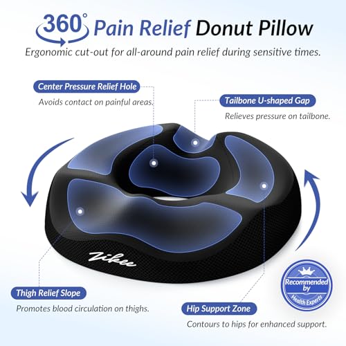 ZIKEE 360° Pain Relief Donut Pillow for Tailbone Pain Relief, Optimal Sitting Support for Postpartum and Post Surgery